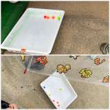 雨が降ったので、運動場にできた水溜りを使い実験をしました。 水溜りの近くにバ...