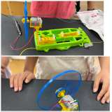 実験キットを使って、乾電池をつなぐ向きと、モーターの回る向きの関係を調べました...