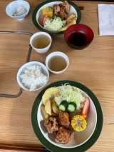 夕食は唐揚げとスープをいただきます。 この後はお風呂に入ってナイトウォークと花火...