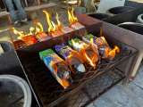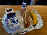 チーズ、キャベツをはさんだコッペパンを持参した牛乳パックに入れてこれから焼きます...