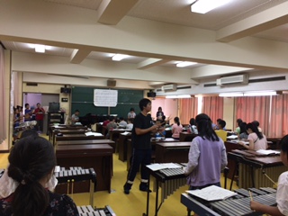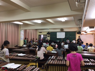 打楽器、低音、リコーダー、鍵盤ハーモニカ、鉄琴、木琴のグループに分かれ、いろいろな順番で楽器を増やしていきました。