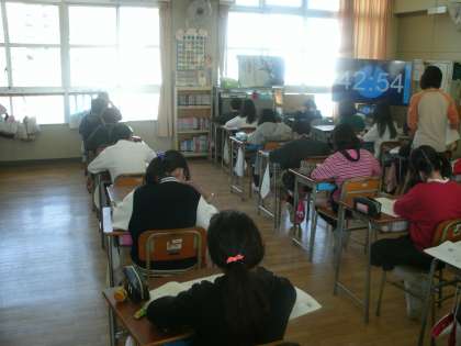 6年生は午前中、全国学力学習状況調査を行いました。1時間目に国語、2時間目に算数、3時間目に生活アンケートを行いました。45分間を続けて受けましたが、子どもたちは最後まで集中して取り組んでいました。