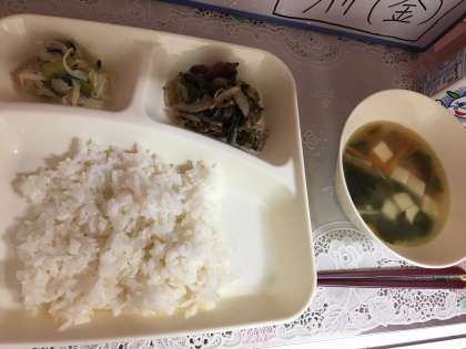 今日の給食は『ごはん、牛乳、プルコギ、とうふのスープ、チンゲンサイともやしのゆずの香あえ』でした。