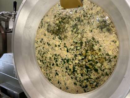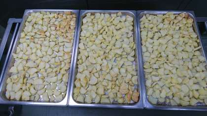 焼きじゃがは、皮をむいたじゃがいもを半月切りにして塩で味付けし、コンベクションオーブンで蒸し焼きにしています。じゃがいもの甘味を感じられるシンプルな献立でした。
