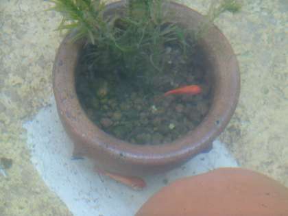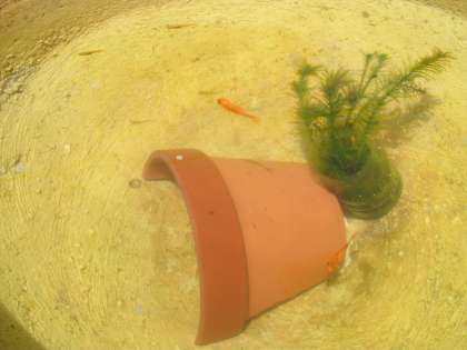その際には、学校に飼育している生き物たちも見てください。例えば、下の写真の金魚はどちらで飼われていると思いますか?金魚とメダカとエビがいます。こちらは、管理作業員さんが作ってくださいました。明日、探してみてください。