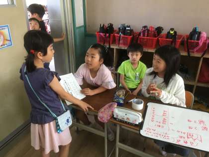 4年3組では「しゃてきFresh」をしました。割りばしで作った銃を使って、用意した的を倒して高得点を狙うゲームです。クラスで協力して、たくさんのお客さんを迎えることができました。思い出に残る一日になりました。