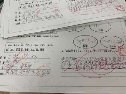 *「給食は主食・主菜・副菜・その他にわけられてることが分かった。このことをお母さんに伝えたいと思った。」