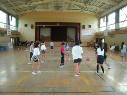 6年4組は、来週の夢授業に向けて、昼休みにバレーボールを楽しみました。グループごとに輪を作って、落とさないようにしましたが、力加減やタイミングなどが難しく、なかなか連続で続きませんでした。ただ、止めてしまっても誰も攻めることなく、楽しそうに活動しました。