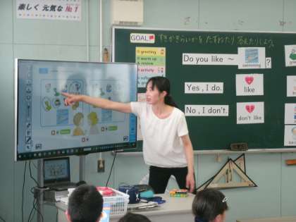 5時間目に3年1組西口学級において、外国語活動の授業を教員全員で参観しました。子どもたちは積極的に英語にふれていました。今回の学習では相手の好みを聞く「Do you like 〜?」、答える「Yes,I do.」「No,I don`t」のやりとりを学びました。
