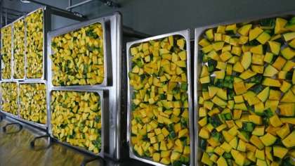 かたいかぼちゃが1つ1つ、調理員さんの手によって、食べやすい大きさに切られていきます。