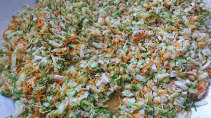 豚ひき肉とキャベツ、ピーマン、にんじんを炒めて赤みそや砂糖などで味付けした、少し甘味がありコクのある炒めものに仕上がりました。