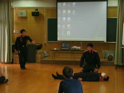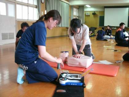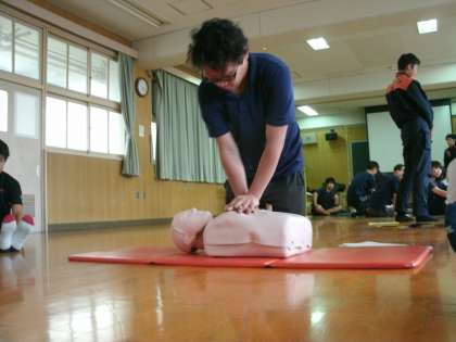 本日、放課後に教職員とPTAの方とで、毎年旭消防署の方にお越しいただいて、救命救急講習会を受けました。事故など起きないことが第一ですが、もしもの時に全員が対応できるよう、指導していただきました。