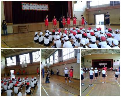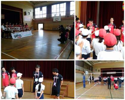 6月12日(水)に、バレーボールの「サントリーサンバーズ」の監督・選手・スタッフの方々に来ていただき、「夢・授業」として、6年生にバレーボールを教えていただきました。