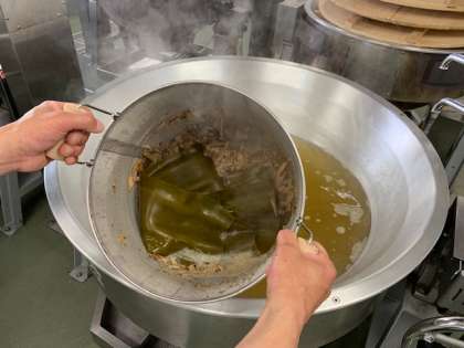 けずりぶしとだしこんぶでだしを取っている様子です。