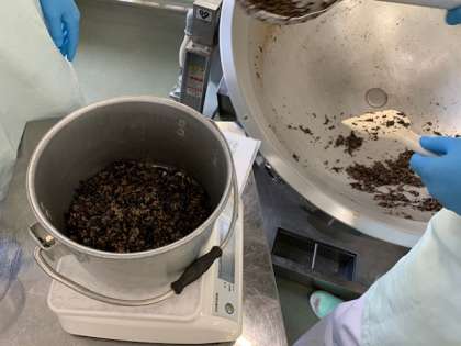 牛ひき肉と、あらかじめ水でもどしておいたひじきを炒め、甘辛く味付けし、さらに細かく切った青じそを加えてさっぱりとした風味に仕上げています。