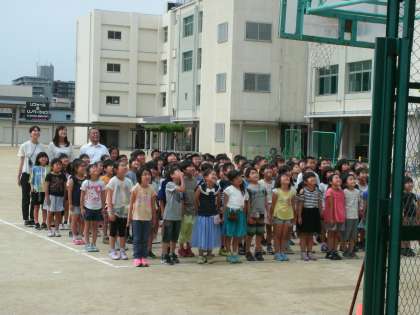 全校写真の後に、1年生から順番に学年写真を撮影しました。