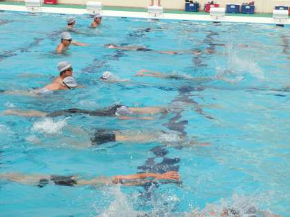 5年生の水泳指導を見ていて、待つ姿勢と話を聞く姿勢をみんながしっかりできているのが素晴らしいと思いました。また、水泳の苦手な子が遅れると、周りから「がんばれ!」、「あと少し!」という声が出てくるのもよかったです。