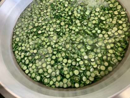 「あっさりきゅうり」は塩ゆでした後、さらに塩をふって仕上げました。