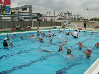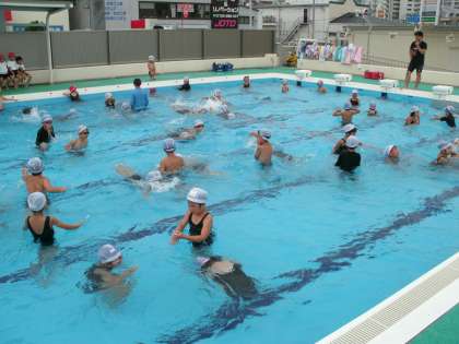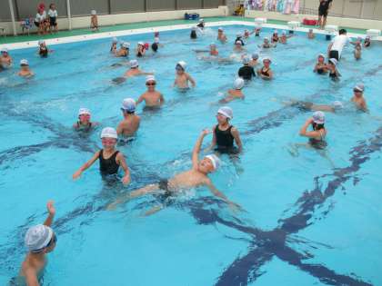 がんばったご褒美の自由時間も、さまざまな浮き方の練習をする子がたくさんいました。