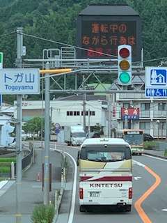 自動車道路を出て一般道路に入りました。この辺りは、雨が降っていません。
