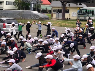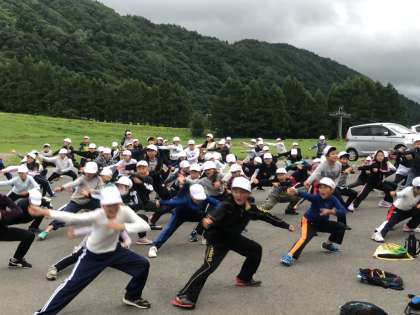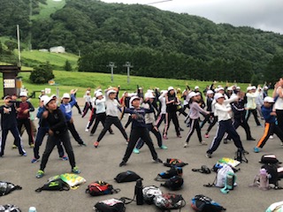 夜の散歩に出かける前に、みんなで南中ソーランを踊りました