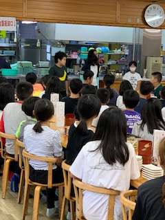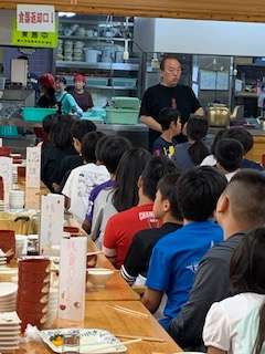 朝食が終わり、こと後の予定をみんなで確認しています。