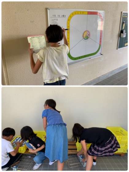 牛乳パックの片付け、牛乳カゴをクラス順に並べる…などなど、仕事は多岐にわたりますが3人で分担し、テキパキとこなしています♪