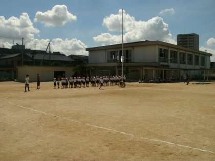 2時間目、1年生では運動会に向けて、50m走のタイムを測りました。