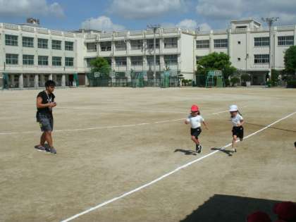 晴天だったためとても暑い中でしたが、1年生は一生懸命走っていました。