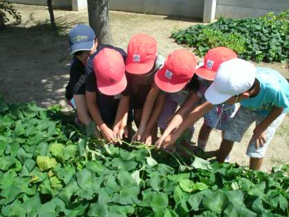 夏休みの間、ぐんぐん成長したさつまいも、秋が楽しみです。