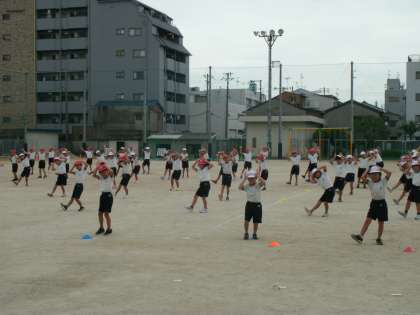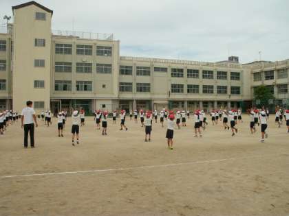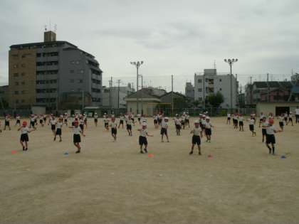 2年生は1時間目講堂で、2時間目は運動場で練習を行いました。