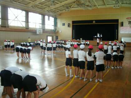 3年生は3時間目に講堂で、4時間目に運動場で練習をしました。
