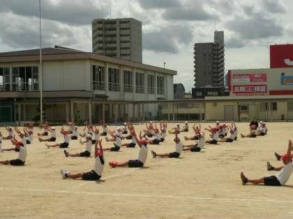 4年生では3時間目運動場で、4時間目は講堂で練習を行いました。