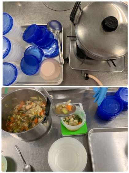 除去食は、1人分ずつ容器に入れて、児童の名前が書かれたプレートをつけて提供しています。(写真上から3,4枚目)