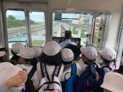 帰りのモノレールは、特等席から車掌さんの運転の様子や線路などを見ることができ、大興奮の子どもたちでした。