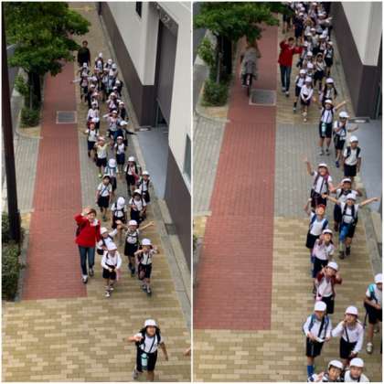 たくさん歩いて疲れているであろう中でも、歩道橋の上から手を振ると、いい笑顔を向けてくれて、最後まで全員しっかりと歩ききりました。