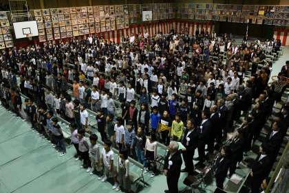 創立70周年記念式典の第2部では、来賓をはじめ地域や保護者の皆様方など多数の方にご参加いただき、盛会裡のうちに終了いたしました。児童を代表して5年生、6年生も参加しました。