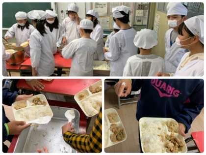 給食では豚バラ肉を使用し、調理前にしっかりとゆがくことで、余分な脂を落としています。