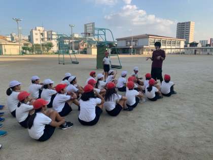 外から元気な声が聞こえたので覗いてみると、6時間目に6年2組がバスケの授業をしていました。