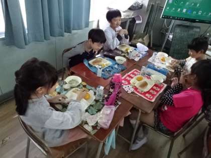 「何が入ってる?」など今日の食材について子ども達同士でも話しあっている声も聞こえ、楽しい食育の学習にもなっています。