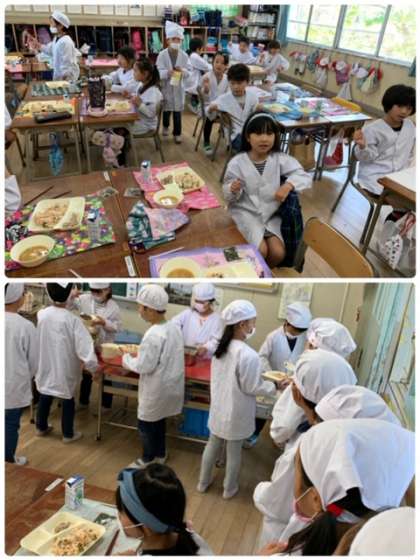 この時ちょうど流れていた音楽が、2年生の運動会で使っていた曲だったこともあり、子どもたちはテンションMAX!!踊りだしたい気持ちをグッとこらえて(笑)、給食の準備をしていましたよ♪♪