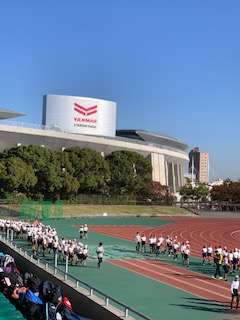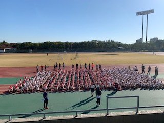 晴天の中、旭区6校と浪速区1校の小学6年生が集まってスポーツ交流を行います。