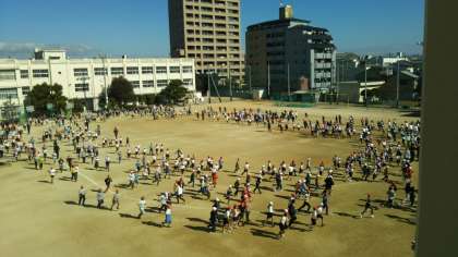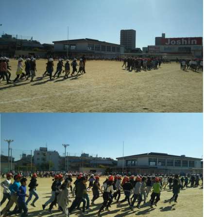 朝は寒かったのですが、5分間走の頃になると日差しもあり、暖かい中で行いました。