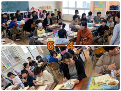 今日は、6−3と6−4にそれぞれ1人ずつ調理員さんを招待しての交流給食でした。