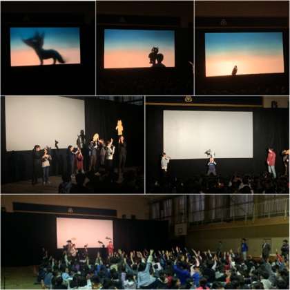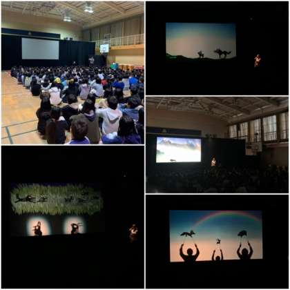 本日、東京から来られた『劇団 かしの樹』の方による、『あらしのよるに』の影絵を、1・2・3年生、4・5・6年生に分かれて鑑賞しました。