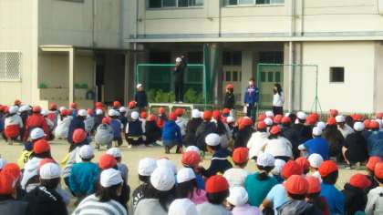今日のなかよし集会では、「猛獣狩りに行こうよ」ゲームをしました。集会委員会が出した言葉の文字数と同じ人数で集まって座るというルールです。全学年が交じって楽しみました。はじめは、文字数も少なく簡単でしたが、文字数が増えるにつれて、うまく人数が集められない低学年の子どもが出てきました。しかし、さすが6年生、低学年の子を先にグループに入れて自分はその後グループを探したり、自分の入っていたグループを譲ったりして、低学年の子どもが楽しめるようにしていました。