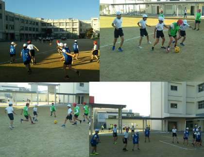 サッカークラブでは、4年生〜6年生が混ざったチームが4チームに分かれ、試合を行いました。