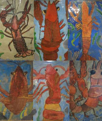 二年生は生活科で育てたザリガニの絵とふしぎなたまごを作りました。
