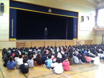初めに校長先生から、新年を迎えるにあたり「何かひとつ目標をもって学習に取り組んでください。」「友達を今まで以上に大切にしてください。」というお話がありました。笹谷先生からは3学期に向けて、「今までがんばってきたことを、今学期中に出し切りましょう。」というお話がありました。
