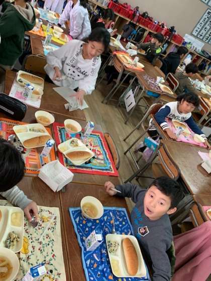 給食室では、いつも大きな声であいさつをする、とっても元気なクラスです。